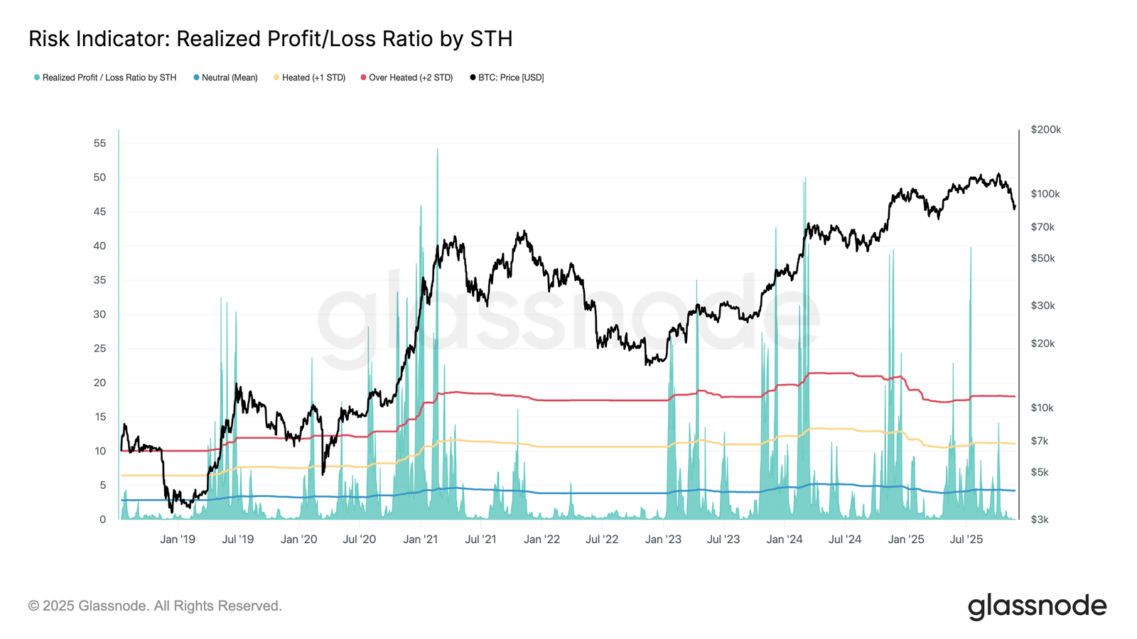 W obliczu osłabienia struktury rynku płynność staje się kluczowym wskaźnikiem dla przewidywania kolejnych ruchów. Długotrwały okres niskiej płynności zwiększa ryzyko dalszego kurczenia się rynku, a wskaźnik STH Realized Profit/Loss Ratio daje jeden z najczystszych obrazów obecnego momentum popytowego.