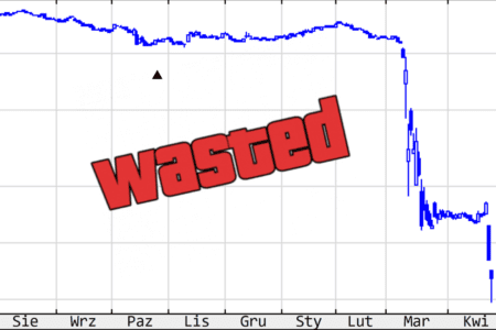 W porównaniu do historycznych maksimów, które miały miejsce w listopadzie 2021 r. (40 miliardów USD), oznacza to spadek prawie o 98 proc.! Zestawmy ten obrazek z tokenem takim jak Ethereum czy Bitcoin, które w tym samym okresie trzymały wartość porównywalnie lepiej (aczkolwiek przyznajmy uczciwie że tąpnięcia w ich wycenie były nadal nieakceptowalnie wysokie).