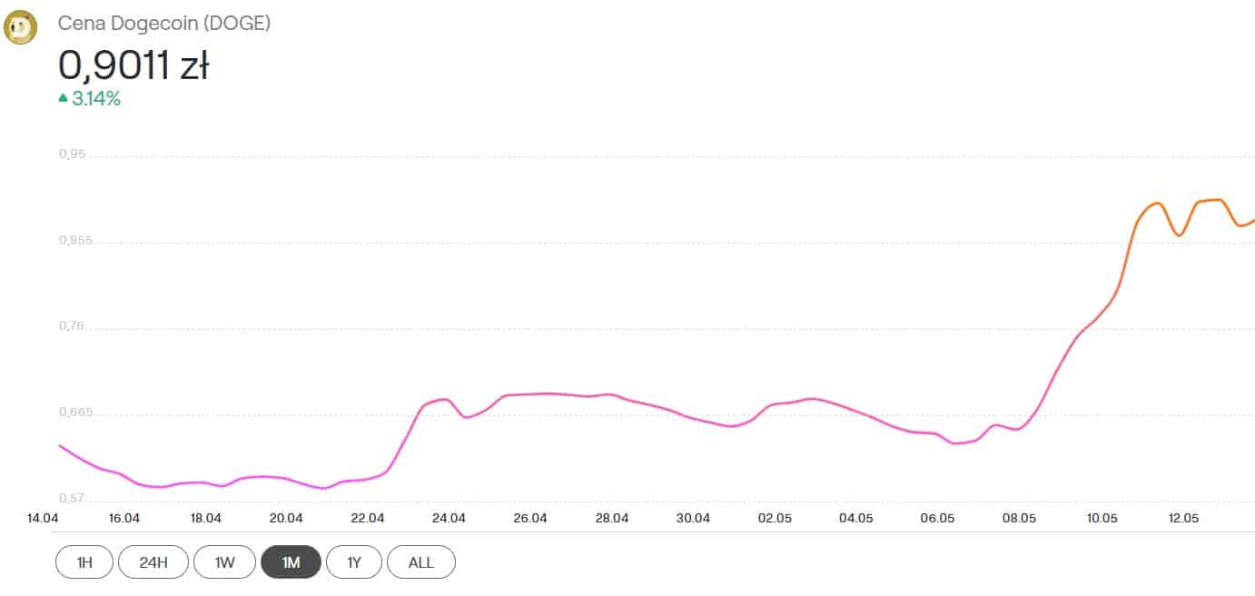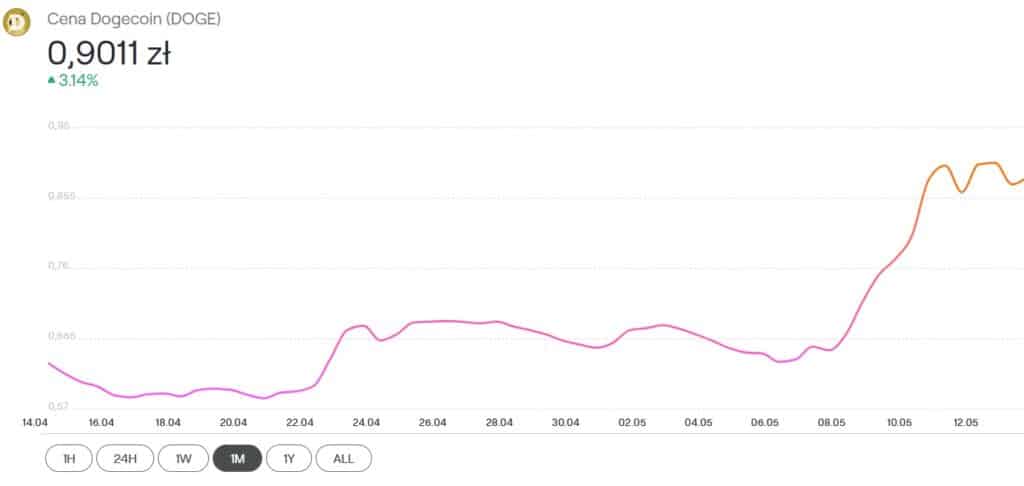 Wczoraj SEC oficjalnie zarejestrowała wniosek 21Shares, na co rynek zareagował dużym optymizmem. Chwilę po ogłoszeniu tej wiadomości moneta zyskał na wartości 6,29%. W momencie pisania tekstu Dogecoin kosztuje 0,24 USD, a w ciągu ostatnich 24 godzin nieco spadł — o 0,79%. Natomiast przez ostatni tydzień i miesiąc legendarny memecoin zyskał na wartości odpowiednio o 34,46% oraz 36,85%.