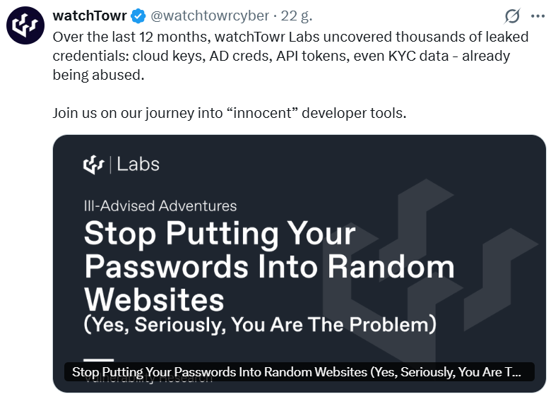 Zespół watchTowr Labs ujawnił, że na dwóch niezwykle popularnych stronach do formatowania kodu – JSONFormatter i CodeBeautify – od lat wyciekały prawdziwe hasła, klucze dostępowe, dane LDAP i konfiguracje. W sumie w niepowołane ręce trafiło ponad 80 tysięcy plików. Wśród nich znajdują się loginy do Active Directory, API keye, dane dostępowe do baz danych, a nawet klucze chmurowe dużych firm. Co najgorsze, część tych danych już została pobrana i testowana przez nieznanych aktorów.