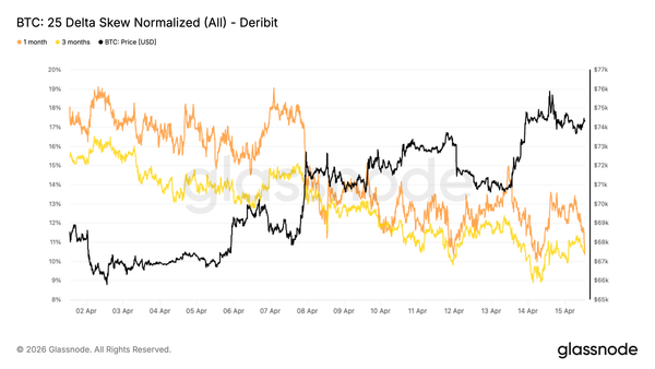 Skew 25 delta nadal pokazuje przewagę popytu na ochronę przed spadkami
