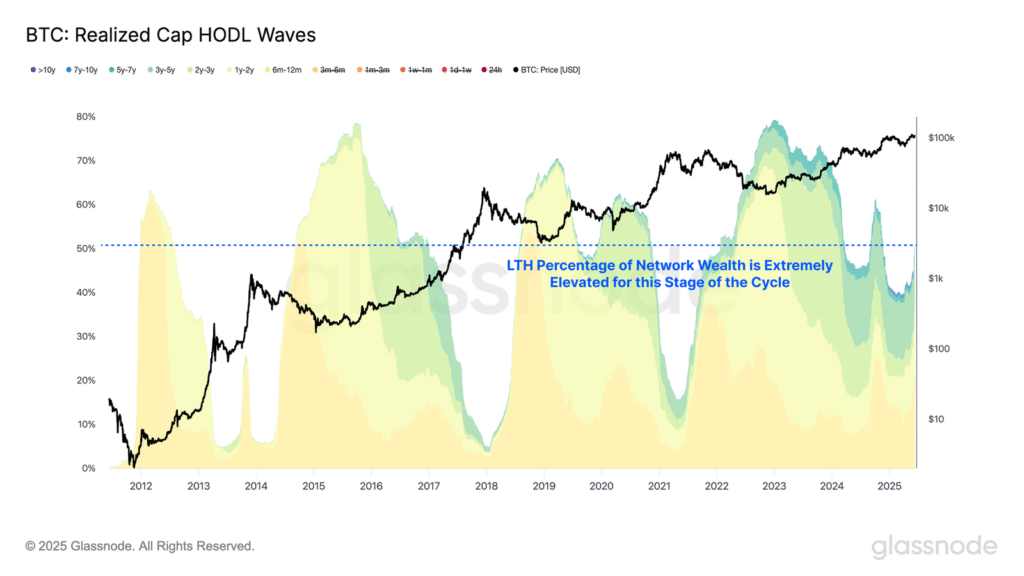 Ta nowa struktura rynku świadczy o tym, że aktywa w rękach długoterminowych inwestorów są bardziej „przyklejone” niż w poprzednich cyklach. Za tę zmianę można w dużej mierze przypisać rosnące znaczenie amerykańskich ETF-ów na Bitcoina oraz większą obecność instytucji, które stabilizują podaż w długoterminowej grupie.