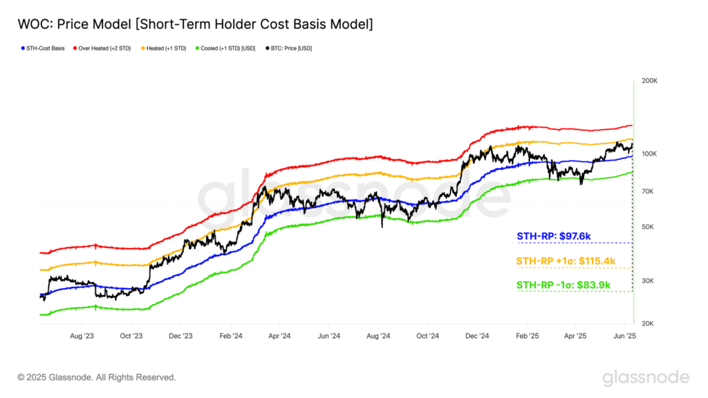 Skupiając się na istotnych poziomach cenowych on-chain, warto zwrócić uwagę na koszt bazowy Krótkoterminowych Holderów (STH), który reprezentuje średnią cenę nabycia przez nowszych uczestników rynku. Historycznie, poziom ten wyznaczał granicę pomiędzy lokalnymi trendami byczymi i niedźwiedzimi.