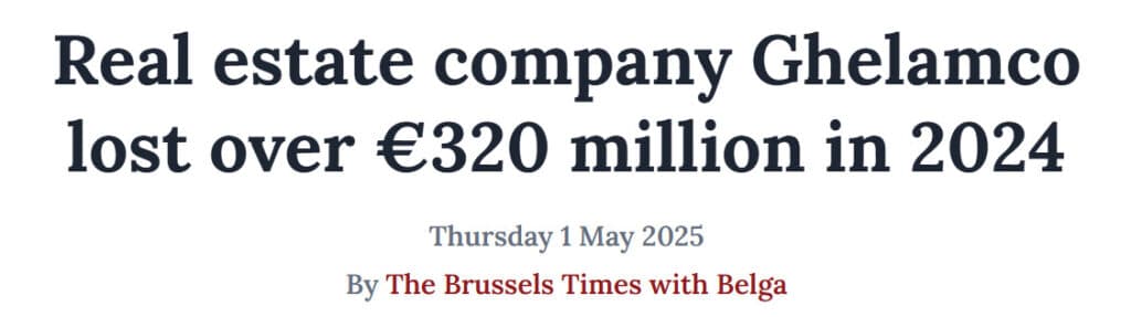 „Belgijski deweloper Ghelamco, będący częścią cypryjskiej grupy Granbero Holdings, znany z prestiżowych inwestycji w Warszawie i innych miastach Europy, zamknął 2024 rok z wynikiem netto na minusie – aż 323,9 mln euro straty. ”