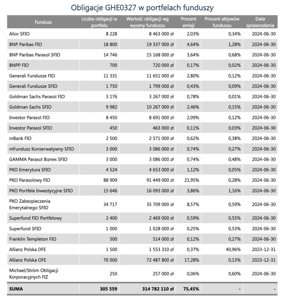 Choć zarząd deklaruje możliwość emisji nowych obligacji i dalszej sprzedaży aktywów, rynek zachowuje się tak, jakby przygotowywał się na potencjalny scenariusz restrukturyzacyjny. Do połowy 2025 r. przypada spłata obligacji o wartości 80 mln EUR przez Ghelamco Group NV, w tym jednej serii na 79,5 mln EUR, której wykup zaplanowano na 14 lipca.