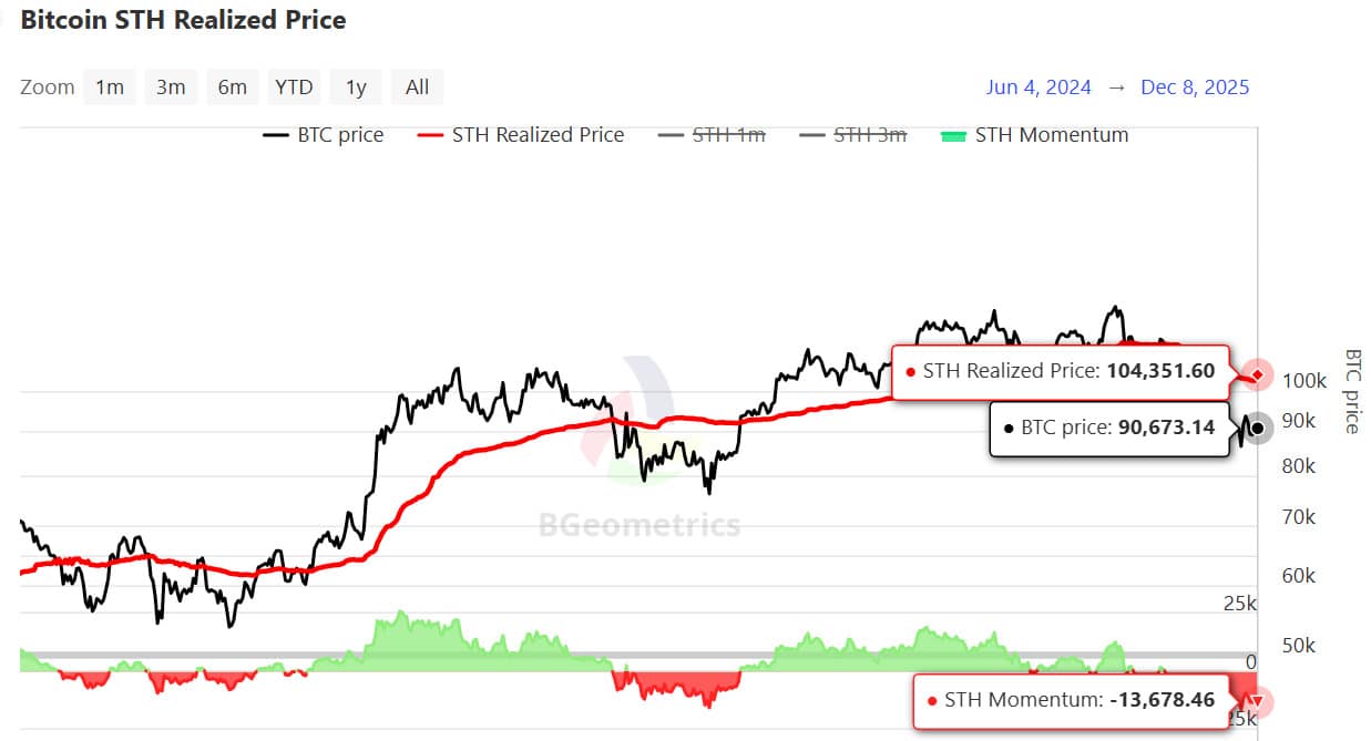 Patrząc w przód, utrzymanie ceny w przedziale 0,75–0,85 kwantyla (96,1–106 tys. USD) będzie kluczowe dla stabilizacji struktury rynku i ograniczenia wrażliwości na spadki do końca roku. True Market Mean pozostaje najpewniejszą strefą budowy dna, chyba że negatywny impuls makro zaburzy już i tak delikatną równowagę rynku.