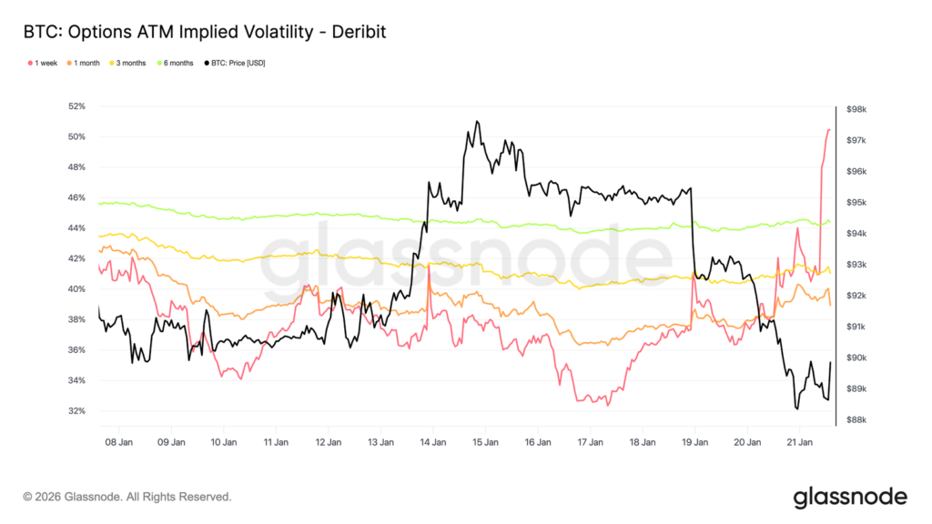 Tak gwałtowne stromość krzywej zmienności na krótkim końcu pokazuje, że traderzy reagują taktycznie, zamiast ponownie oceniać ryzyko średnioterminowe. Gdy tylko krótkoterminowa zmienność implikowana się dostosowuje, odzwierciedla to nie tyle fundamentalną zmianę w reżimie ryzyka, co reakcję na bieżące, krótkotrwałe wydarzenia. Rynek w ten sposób wycenia chwilowe ryzyko, a nie trwałe zakłócenia… Sygnalizując ograniczony wpływ ostatnich wydarzeń na ogólną dynamikę zmienności.