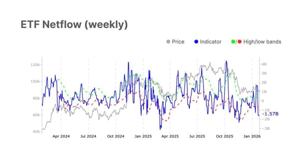 Fundusze ETF notują największe odpływy netto od schyłku jesieni ubiegłego roku. W efekcie strategie typu 'trend tracking’ nie działają w sposób premiujący byki. Dodatkowa atencja rynków wokół metali szlachetnych osłabia zainteresowanie Bitcoinem i pozostałymi kryptowalutami.