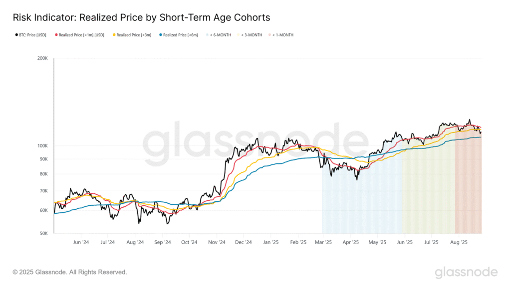 Aby lepiej ocenić skalę frustracji na rynku, warto przyjrzeć się kosztowi bazowemu inwestorów, którzy dołączyli w ostatnich miesiącach. To uśredniona cena zakupu monet przez poszczególne kohorty z ostatnich 1–6 miesięcy, pełniąca rolę psychologicznego punktu odniesienia. Gdy kurs spada poniżej tych poziomów, nowi gracze wchodzą w strefę strat niezrealizowanych, co nierzadko prowadzi do niecierpliwości i dodatkowej presji podażowej.