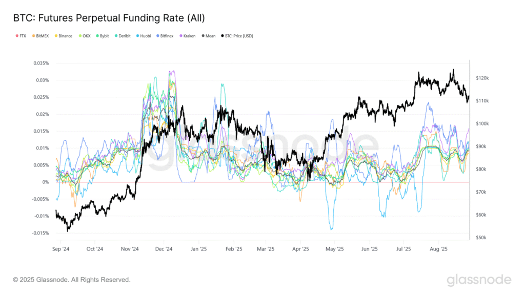 Aby lepiej uchwycić ogólny sentyment na rynku perpetual, warto połączyć analizę CVD z funding rates, które pokazują koszt utrzymania pozycji długich względem krótkich. 7-dniowa średnia ruchoma finansowania na głównych giełdach utrzymuje się obecnie w okolicach 0,01%, z okazjonalnymi krótkimi skokami na niektórych platformach.