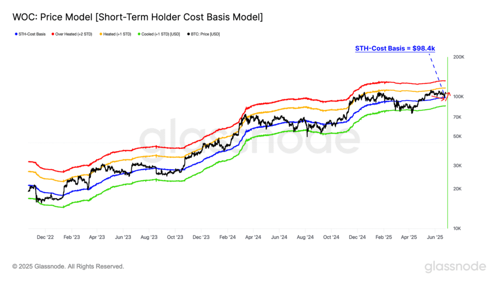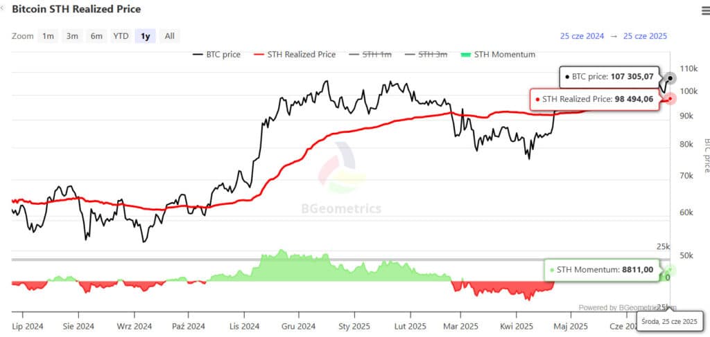 W miniony weekend kurs Bitcoina spadł momentalnie do okolic 99 tys. dolarów, reagując na wzrost napięcia geopolitycznego. Spadek zatrzymał się tuż powyżej średniego kosztu zakupu dla inwestorów krótkoterminowych, który obecnie wynosi około 98,2 tys. USD — technicznie był to ważny punkt obrony.
