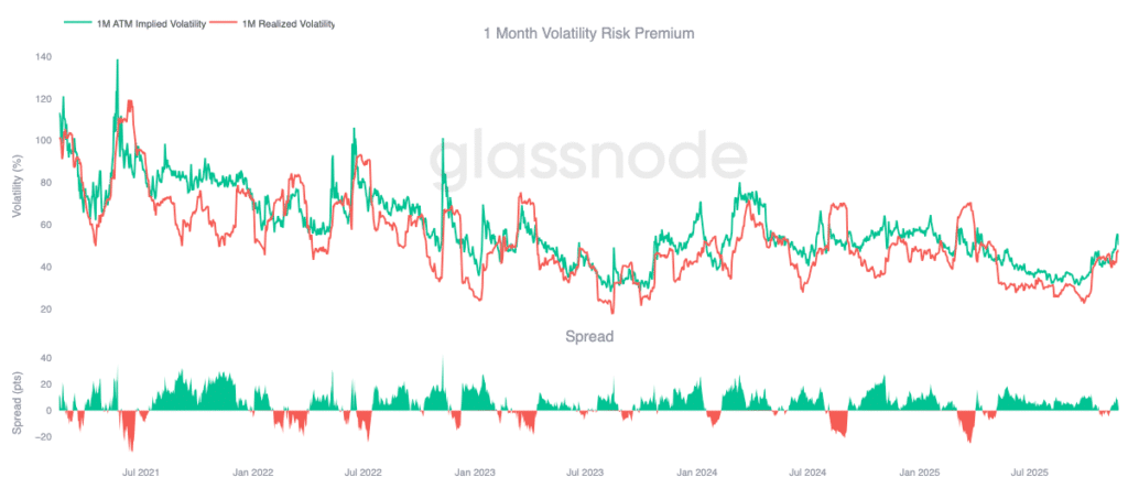 Jednomiesięczna zmienność implikowana pozostaje wysoka, a opcje daleko poza pieniędzmi z terminem wygaśnięcia pod koniec grudnia wciąż osiągają wysokie premie. Z punktu widzenia carry sprzedaż zmienności wygląda więc atrakcyjnie, ponieważ implikowana zmienność przewyższa to, co rynek ostatnio dostarczył. Należy jednak pamiętać, że warunki mogą szybko ulec zmianie, a nadchodzące posiedzenie Rezerwy Federalnej wprowadza potencjalne ryzyko wydarzenia, które może wpłynąć zarówno na zmienność zrealizowaną, jak i na cały krajobraz carry.