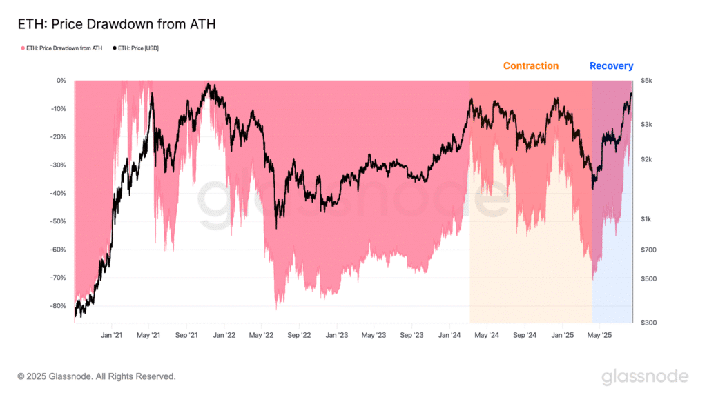 Siła rynku aktywów cyfrowych utrzymuje się, a Ethereum wspięło się do 4,3 tys. USD — najwyższego poziomu od grudnia 2021 r. i jedynie 12,5% poniżej swojego rekordu. Bitcoin z kolei wciąż czerpie wsparcie z solidnych fundamentów on-chain, które podtrzymują jego momentum.