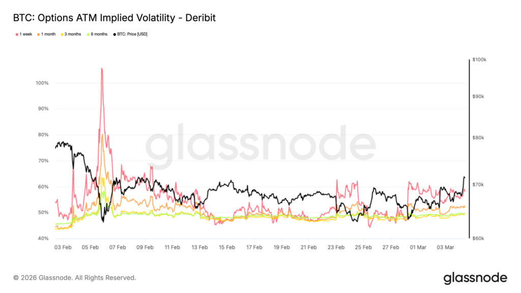 Rynki opcji stopniowo odzyskują równowagę po lutowej fali zmienności. Wskaźnik implikowanej zmienności opcji spada na całej krzywej terminowej… Gdy panika przy hedgingu ustępuje, a rynek przesuwa się w stronę neutralnego stosunku zmienności. Strach przed spadkami maleje. Traderzy mniej agresywnie kupują ochronę, a pozycje opcyjne stopniowo wracają do normy.