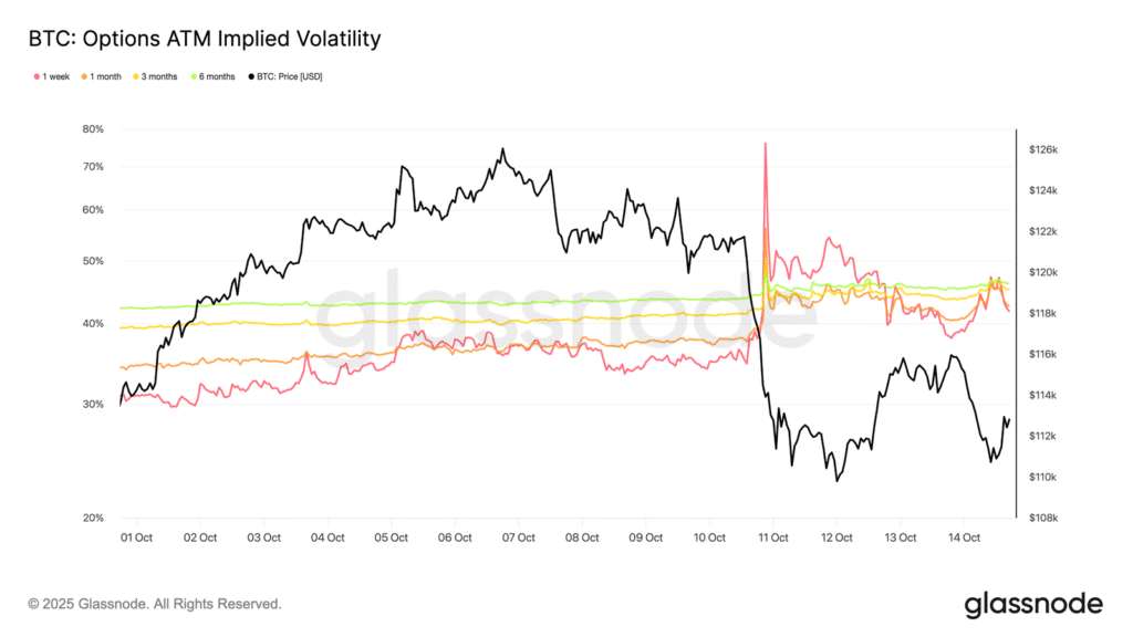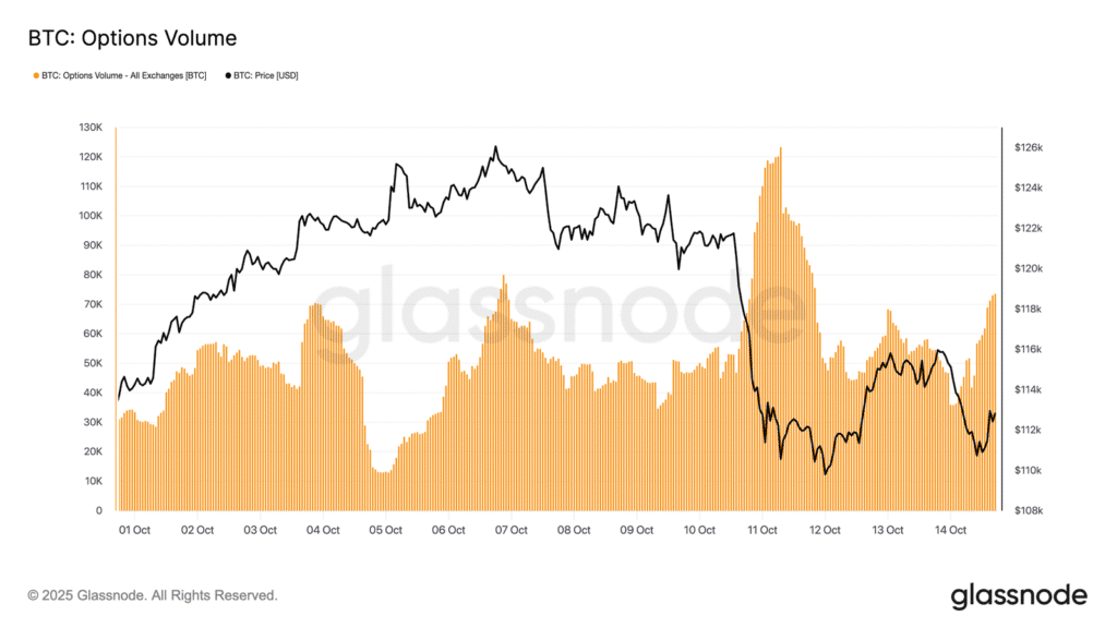Na rynku opcji otwarte pozycje i wolumen szybko się odbudowały, jednak zmienność gwałtownie wzrosła, skew przesunął się mocno na stronę putów, a traderzy w pośpiechu zabezpieczali swoje ekspozycje. Pomimo krótkotrwałej stabilizacji, rynek wciąż pozostaje w fazie resetu … Kluczem do trwałego odbicia będzie powrót silnych napływów ETF i konsekwentna akumulacja on-chain, które mogą przywrócić zaufanie i potwierdzić odbudowę strukturalną.