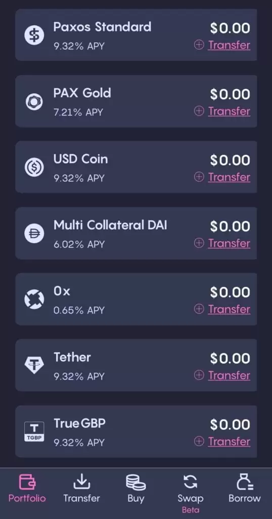 - Nexo oferuje nam 10% APR na najpopularniejszych stablecoinach takich jak USDC, USDT, DAI, USDP, a 12% APR, gdy wybierzemy opcje zarabiania w natywnym tokenie aplikacji NEXO. Za stablecoina UST możemy otrzymać odpowiednio 15% bądź 17%.