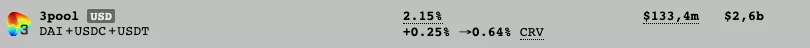 Np. w Curve 3Pool, który składa się z trzech tokenów: DAI, USDC oraz USDT, obecnie APY wynosi 2,15%, jednak czasami wzrasta wielokrotnie wyżej osiągając nawet poziomy 10%. Dzieje się tak ponieważ zapłatę otrzymujemy w tokenie CRV.