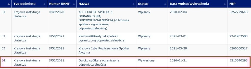 Zgodnie z najnowszym komunikatem Komisji Nadzoru Finansowego z listy Krajowych Instytucji Płatniczych znika jeden z podmiotów. KNF jednogłośnie zdecydowała, że spółka Quicko sp. z o.o. znika z rejestru. Jakie były przyczyny tej decyzji i co dalej z klientami spółki?