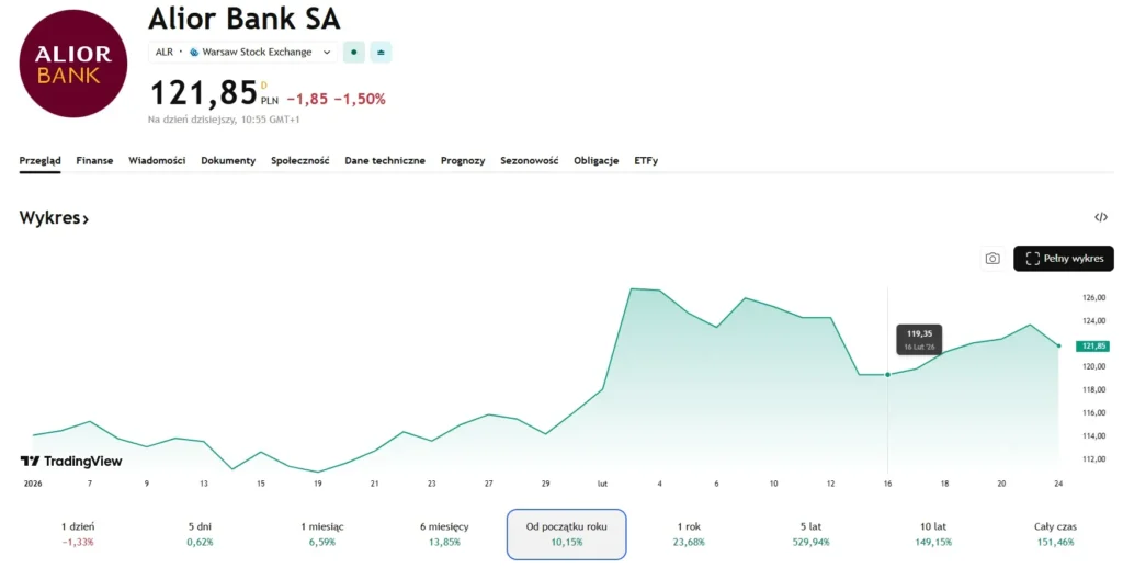 Solidne wyniki finansowe grupy Alior Banku zapewne ucieszą nie tylko zarząd. Z najnowszych danych wynika, że wskaźnik TCR banku na koniec 2025 roku wyniósł 17,63 proc. Z kolei współczynniki Tier 1 oraz TCR na koniec grudnia 2025 r. przekraczały minima regulacyjne, odpowiednio o: 813 pb. (4,8 mld zł) oraz 613 pb. (3,7 mld zł). To oznacza, że grupa Alior Bank spełnia kryteria Komisji Nadzoru Finansowego, które umożliwiają wypłatę dywidendy w wysokości do 50% zysku netto.