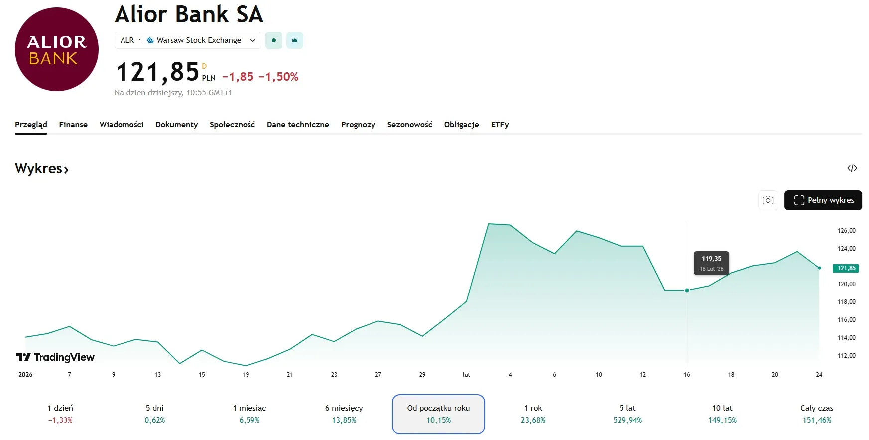 W poprzednim roku na wypłatę dywidend bank przeznaczył 1,2 mld zł, co wówczas dawało 9,19 zł dywidendy na jedną akcję. Obecnie spółka na giełdzie jest dość stabilna i regularnie notuje nieduże wzrosty. W ciągu miesiąca zyskała na wartości około 6%, a od początku roku nieco ponad 10%.