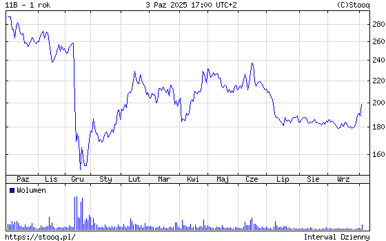 Dzisiaj na zamknięciu sesji za jeden walor 11 bit studios płacono 199 zł. To o prawie 5,5 proc. więcej niż na starcie notowań. Trzeba przy tym zaznaczyć, że w ciągu dnia kurs wędrował nawet wyżej, udało się przebić granicę 200 zł za papier. Tymczasem jeszcze w pierwszej połowie września jeden papier można było kupić za 178 zł. Do tego pułapu kurs dotarł po kilku tygodniach spadków. W czerwcu br. za jedną akcję płacono nawet 246 zł.