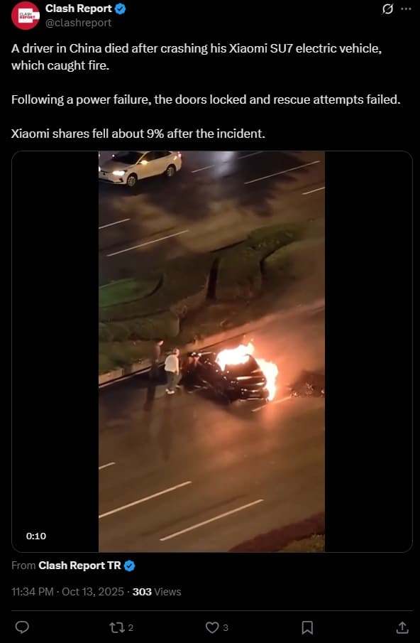 Na portalu X od kilku godzin popularność zdobywa nagranie, na którym widać jak sedan Xiaomi SU7 płonie, a jego kierowca nie może się wydostać na zewnątrz. Do wypadku doszło w mieście Chengdu.
