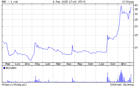 W tym miejscu warto przypomnieć, że na początku października notowania omawianej spółki podczas jednej sesji podrożały o ponad 25 proc. Za jedną akcję firmy trzeba było wówczas zapłacić 33 zł. Dzisiaj cena wzrosła do przeszło 38 zł. Tylko w październiku notowania poszły do góry o około 46 proc.