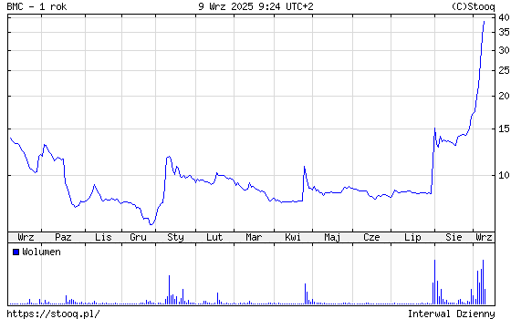 Niektórzy przecierają zapewne oczy, obserwując notowania spółki Bumech. Do niedawna jej kurs poruszał się na jednym poziomie i nie przynosił większych niespodzianek. Ale kilka dni temu notowania eksplodowały – wzrosty sięgają już kilkuset procent. Tylko wczoraj papier tego podmiotu podrożał o niemal 26 proc. Dzisiaj o poranku akcje drożały o przeszło 15 proc.
