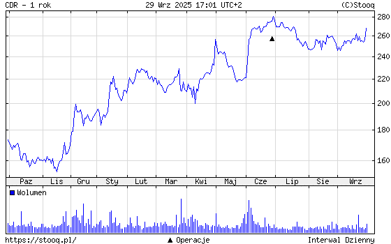 Możliwe, że rynek po prostu odreagował po serii spadków. Przypomnę, że pod koniec czerwca br. za jeden papier płacono ponad 286 zł. Niektórzy inwestorzy pewnie oczyma wyobraźni widzieli już trójkę z przodu. Zamiast tego przyszły jednak spadki. Doszło nawet do tego, że analitycy DM BOŚ w raporcie z końca sierpnia wymienili CD Projekt w gronie kilku spółek, które w kolejnych tygodniach mogłyby zachować się gorzej niż reszta rynku.