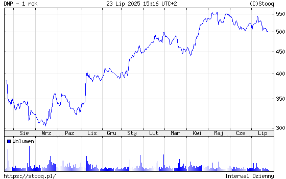 Jak wygląda sytuacja Dino na giełdzie? Wypada zacząć od tego, że kapitalizacja spółki wynosi około 50 mld zł. Dzisiaj o poranku za jedną akcję płacono około 504 zł (w godzinach popołudniowych było to już niespełna 502 zł). Tymczasem jeszcze 9 lipca było to 544 zł. W maju na liczniku było ponad 555 zł. Akcjonariuszy z dłuższym stażem w tej spółce informacje te nie powinny jednak martwić, bo tylko w tym roku akcje Dino podrożały o niemal 30 proc. A od września ubiegłego roku o ponad 60 proc.