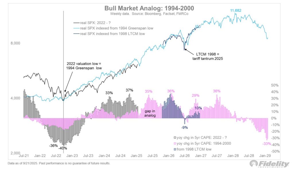 W rynkowej pamięci najciekawsze nie są wcale rekordy czy spektakularne upadki, ale powtarzalne wzorce. Historia gospodarcza ma tendencję do rymowania się, a obecny rynek byków coraz bardziej przypomina ten z lat 90. – szczególnie okres 1994–2000. Tak uważa Jurien Timmer, strateg z Fidelity Investments.
