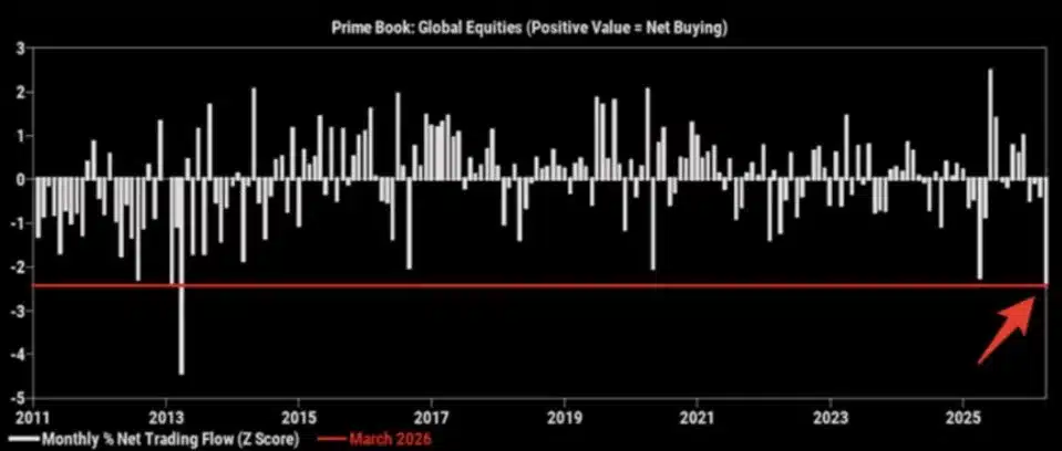 W marcu fundusze hedgingowe w marcu sprzedawały akcje w najszybszym tempie od ponad 13 lat. Sama skala ruchu jest jedną z największych od czasu, gdy Goldman Sachs zaczął ją mierzyć. Globalne indeksy spadły o kilka procent w ciągu jednego miesiąca, a część największych graczy na Wall Street oddała zyski wypracowane wcześniej w roku. Fatalnie radzą sobie akcje technologiczne i niemal wszystkie walory, które korzystały z silnego momentum przez cały trzy ostatnie kwartały 2025 roku.