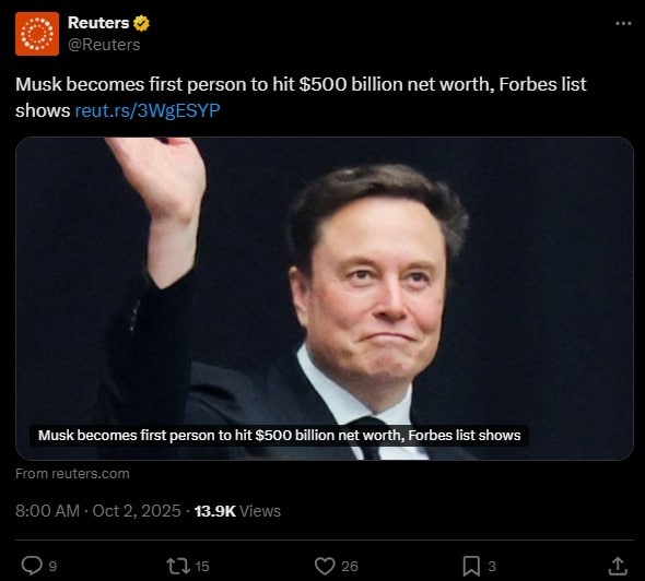 Od momentu, gdy Elon Musk porzucił politykę i wrócił do biznesu, sytuacja firmy, nie od razu, ale rzeczywiście uległa znacznej poprawie. Kilka ważnych ruchów w ostatnich tygodniach wpłynęło pozytywnie na wycenę akcji spółki. Poprawiła się również pozycja samego Muska, który stał się pierwszą osobą na świecie z majątkiem przekraczającym 500 mld dolarów.