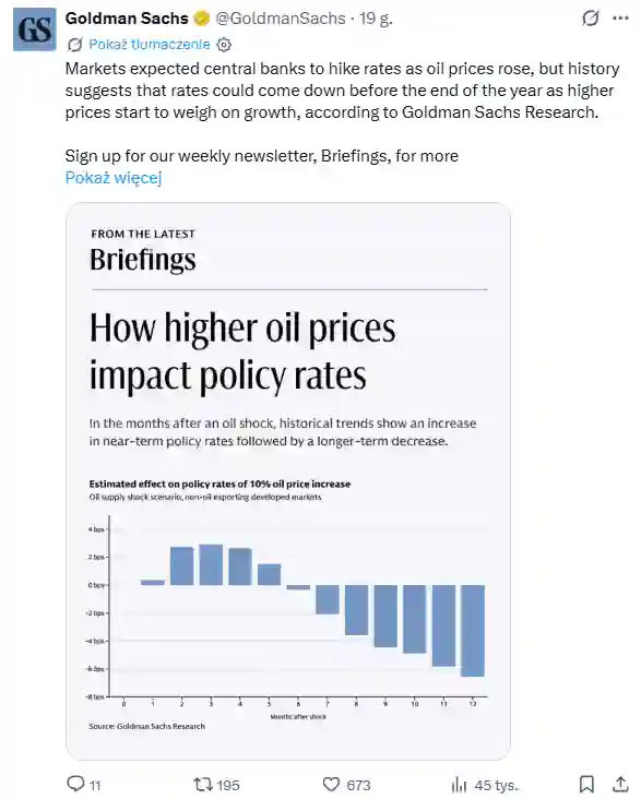 Optymizm dotyczący kryptowalut jest tonowany przez rosnące prawdopodobieństwo utrzymania restrykcyjnej polityki pieniężnej przez Fed co tradycyjnie nie sprzyja wzrostom w tym sektorze. Jak podkreśla @GoldmanSachs rynki aktualnie grają pod pauzę w eskalacji konfliktu a nie pod jego trwałe rozwiązanie co stwarza ryzyko gwałtownych korekt.