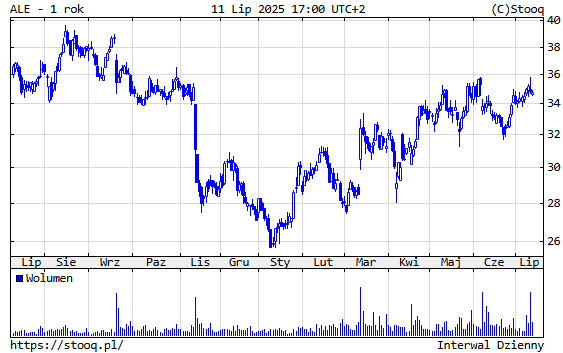 Allegro względnie spokojne. Tymczasem ma warszawskim parkiecie inwestorzy interpretują ofensywę logistyczną polskiego giganta e-commerce jako drogę do poprawy marży. Od kwietnia do dziś (34,74 zł) kurs wzrósł o ok. 14 % – ponad dwukrotnie lepiej niż szeroki WIG, choć w perspektywie tygodnia widać lekką realizację zysków (-1,6 %). Rynek zakłada, że samodzielna sieć automatów obniży jednostkowy koszt dostawy o 20–25 gr już w 2026 r., co przy 300 mln paczek rocznie dawałoby ponad 60 mln zł oszczędności brutto.