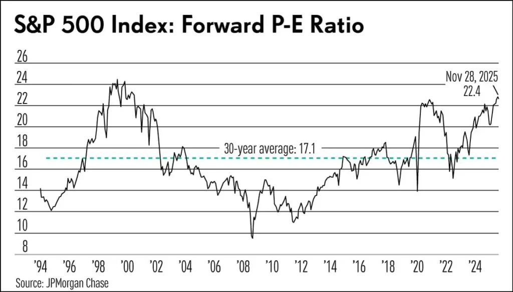 Przypomnijmy, że indeks S&P 500 w ostatnim kwartale ubiegłego roku osiągnął najwyższą w tym cyklu wycenę mierzoną wskaźnikiem 'forward p/e’. Wskaźnik okazał się wyższy o ok. 25% od 30-letniej śeredniej i przekroczył poziomy ze szczytu hossy 2021 roku.