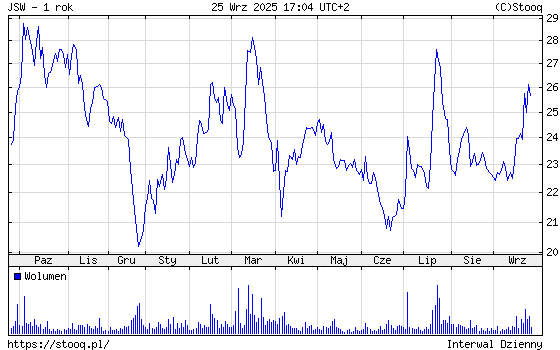 Na koniec dzisiejszej sesji za jedną akcję JSW trzeba było zapłacić niemal 25,7 zł. W trakcie czwartkowych notowań kurs spadł o około 1,6 proc. Może i nie wygląda to oszałamiająco, ale warto dodać, że kiepsko radził sobie cały rynek. Indeks WIG poszedł w dół o 0,9 proc., a indeks WIG20 skurczył się o 1,1 proc. Spośród największych spółek z GPW nad kreską znalazło się jedynie kilka podmiotów. W tym Pepco, którego kurs wzrósł o niemal 14 proc. Z tego tekstu dowiecie się, z czego wynikał ten skok.