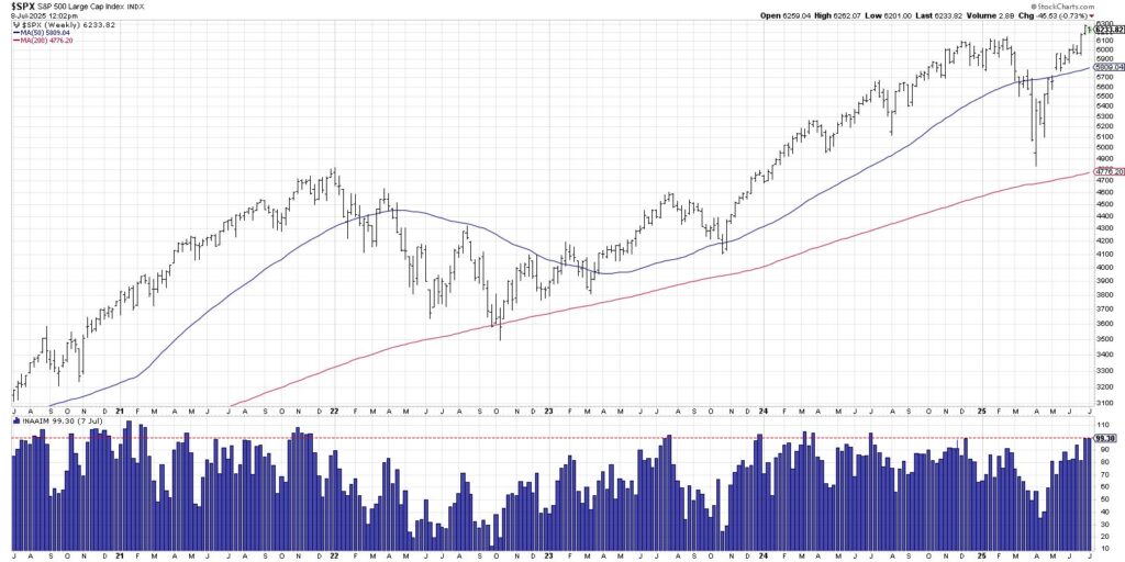 Na pierwszy rzut oka wszystko wygląda świetnie: indeksy biją rekordy, nastroje inwestorów są euforyczne, a media pełne są nagłówków o „nowym złotym wieku” na rynkach. Ale doświadczeni inwestorzy wiedzą, że właśnie wtedy należy zachować szczególną ostrożność. Jednym z narzędzi, które pomagają ocenić temperaturę rynku, jest wskaźnik NAAIM Exposure Index, który właśnie osiągnął poziom 99,3%. Co to oznacza?