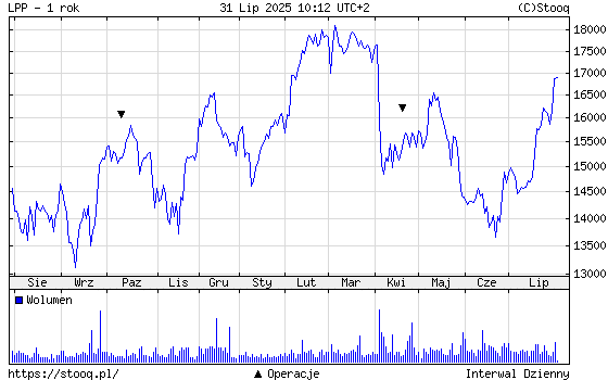Za jedną akcję LPP obecnie należy zapłacić około 17 tys. zł (to nie pomyłka, mowa o najdroższych akcjach na polskiej giełdzie). Jednak stosunkowo niedawno, bo pod koniec czerwca, za jeden papier płacono nawet 13,6 tys. zł. W ciągu kilku tygodni kurs wzrósł o ponad 25 proc. Oczywiście niektórzy zauważą, że wcześniej poważnie spadł – w marcu br. za jeden walor płacono 18,5 tys. zł. Jeszcze w połowie maja było to 16,5 tys. zł.