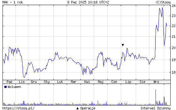 Raport podsumowujący działalność spółki w II kwartale 2025 roku nie oczarował inwestorów. Wynikało z niego m.in., że Makarony Polskie zanotowany ponad 4,5 mln zł zysku netto, podczas gdy rok wcześniej było to przeszło 8,6 mln zł. Przychody sięgnęły niemal 73,3 mln zł. Rok wcześniej było to ponad 71,1 mln zł. Prezes Zenon Daniłowski wyjaśniał, że w pierwszej połowie roku spółka mierzyła się ze spadkiem cen rynkowych makaronów przy jednoczesnej stabilizacji cen surowców. Do tego dochodziły agresywna polityka handlowa konkurencji oraz presja ze strony sieci handlowych.