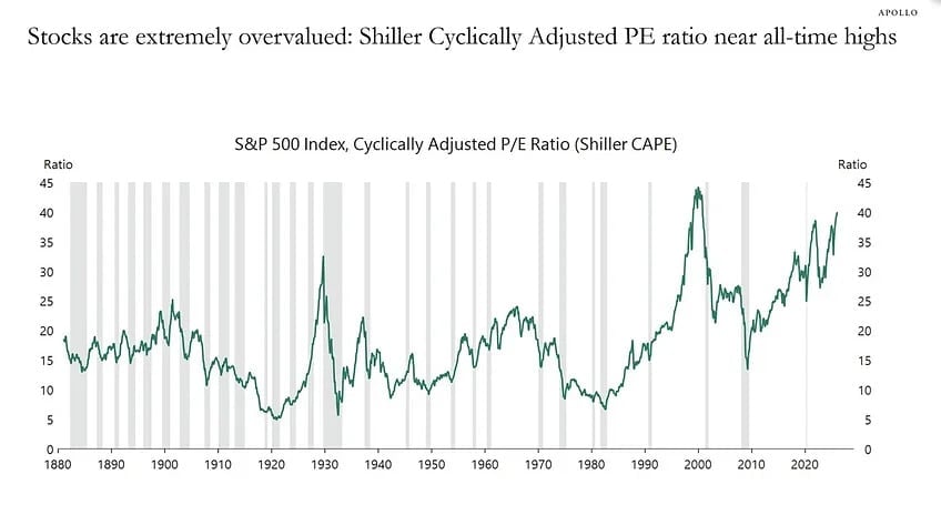 Poziom odpowiadający 20% oczekiwanego zwrotu to z kolei moment pełnej kapitulacji. To cena, przy której „wszyscy chcą się poddać i wrócić do domu”. Historycznie takie warunki pojawiały się niezwykle rzadko: w dołku lat 2002–2003 oraz w apogeum kryzysu finansowego w latach 2008–2009. Nawet panika z początku pandemii w 2020 roku, zdaniem Burry’ego, nie osiągnęła tej skali. W swoim tweecie na X pokazał wskaźnik Shiller CAPE.