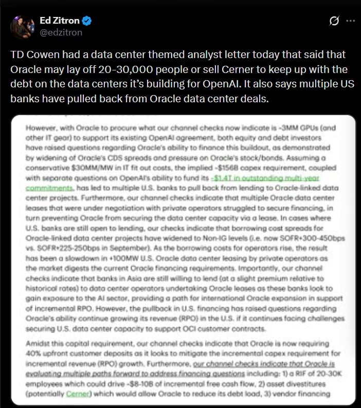 Oracle zwolni 30,000 ludzi by finansować AI i przetrwać? Centra danych toną w długach