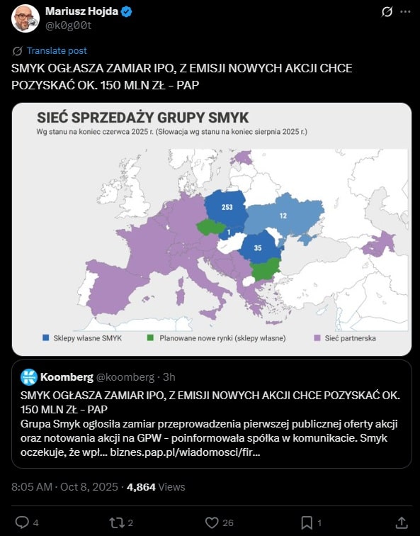 Dlatego wszelkie pogłoski i doniesienie o potencjalnym debiucie nowej spółki są szeroko komentowane przez rynek i ekspertów. Szczególnie jeśli doniesienia dotyczą tak dużych podmiotów, jak Grupa Smyk, która zadeklarowała chęć wejścia na Warszawską Giełdę Papierów Wartościowych.