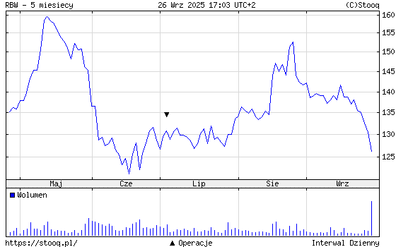 Całkiem niedawno, bo w połowie maja br., za jedną akcję Rainbow Tours płacono niemal 177 zł. Jeszcze pod koniec sierpnia było to ponad 156 zł. A na zamknięciu czwartkowej sesji około 130 zł. Dzisiaj o poranku kurs spadł poniżej 115 zł. W kolejnych godzinach sporo się oczywiście działo, były wzrosty i ponowne zjazdy. Ostatecznie dzień zamknął się z wynikiem 126,3 zł na liczniku. Notowania poleciały w dół o ponad 3 proc. Sporo, ale w zestawieniu z porannym wodospadem…