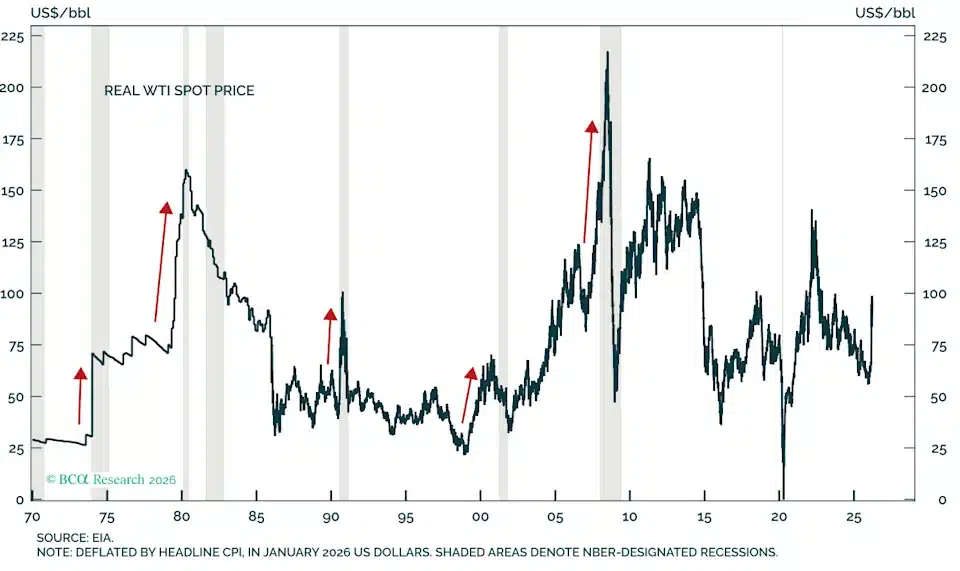 Na tym etapie coraz trudniej ignorować jeden, niewygodny wniosek: gwałtowne szoki na rynku ropy niemal zawsze kończą się spowolnieniem gospodarczym. To nie teoria, tylko powtarzający się schemat widoczny od lat 70. Każda recesja w USA, poza pandemicznym wyjątkiem, była poprzedzona skokiem cen energii. Dzisiejsze otoczenie zaczyna niepokojąco przypominać tamte momenty.