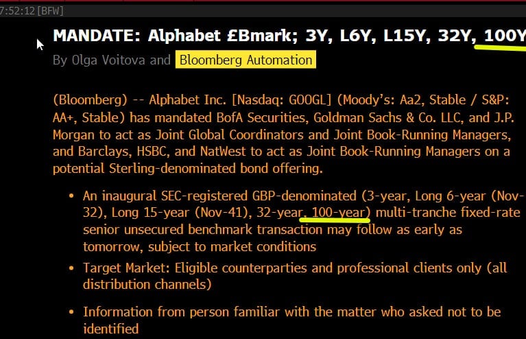 Szczyt bańki AI? '100-letnie obligacje Google’.