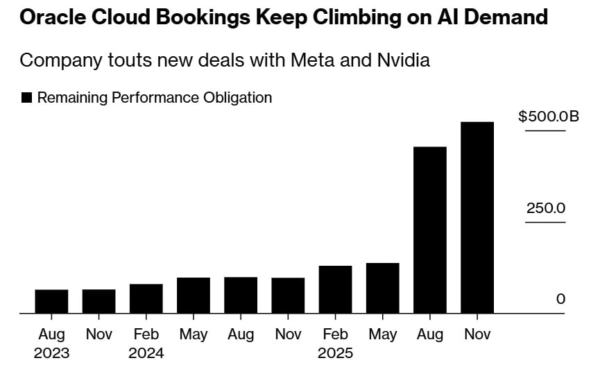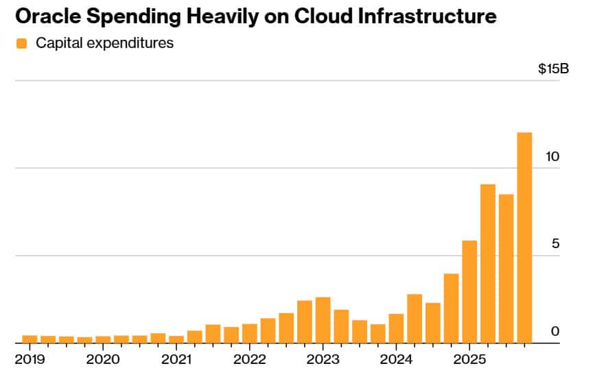 Najwięcej emocji budzą wydatki inwestycyjne. Oracle co prawda przekroczył oczekiwania zysku netto, ale rozminął się z oczekiwanymi przychodami, raportując niespełna 16,1 mld USD wobec 16,2 mld prognoz … Do tego spółka wydała w kwartale 12 miliardów dolarów na centra danych i sprzęt, wyraźnie więcej niż kwotę 8.5 mld USD w poprzednim kwartale Oczekiwania analityków były jeszcze niższe, bo rynek liczył na 8.25 mld USD. Taki skok pokazuje skalę ambicji spółki, ale też odsłania, jak drogie staje się budowanie infrastruktury AI w tempie, które obiecano inwestorom.