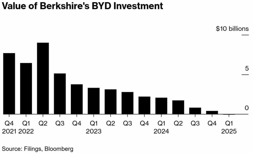 Historia tej inwestycji zaczęła się w dobie kryzysu finansowego w 2008 roku, gdy Charlie Munger, wieloletni przyjaciel Buffetta, porównał założyciela BYD, Wanga Chuanfu, do połączenia Edisona i Gatesa. Berkshire kupił wówczas 225 milionów akcji po 8 HKD za sztukę. Przez kolejne lata BYD przeszedł od niepozornego producenta baterii do największego producenta elektryków i hybryd w Chinach. Wartość inwestycji Buffetta wzrosła niemal 4000%, generując zyski rzędu 60 miliardów HKD.