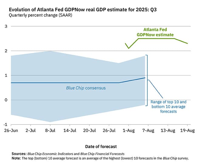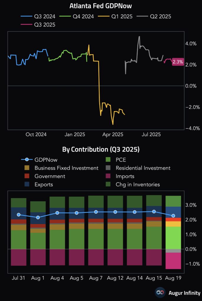 Wells Fargo, dotąd bardziej zachowawcze, też zmieniło ton. Analitycy banku zakładają obecnie przedział 6 300–6 500 punktów na koniec 2025 r., wskazując, że opóźnienie we wdrażaniu nowych taryf rozłoży ich efekt w czasie. W praktyce oznacza to, że negatywne skutki dla wzrostu gospodarczego i inflacji zostaną przesunięte w stronę 2026 roku… A indeks nie ma już potencjału wzrostu z obecnego poziomu. Co więcej, raportowany Atlanta Fed GDP Now spadł do 2,3% r/r wobec 2,5% r/r w poprzednim odczycie.