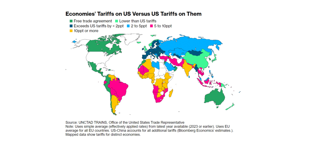 Wprowadzone przez jego administrację cła na szereg produktów dotknęły wiele krajów świata. Najbardziej bolesne może być to dla tzw. krajów trzeciego świata (eufemistycznie „krajów rozwijających się”), z których wiele – jak Indie, Indonezja, Brazylia, Turcja, Tajlandia czy Argentyna, by wymienić jedynie te najznaczniejsze pod względem handlu – stosują protekcjonistyczne cła w celu ochrony swojego rynku wewnętrznego.